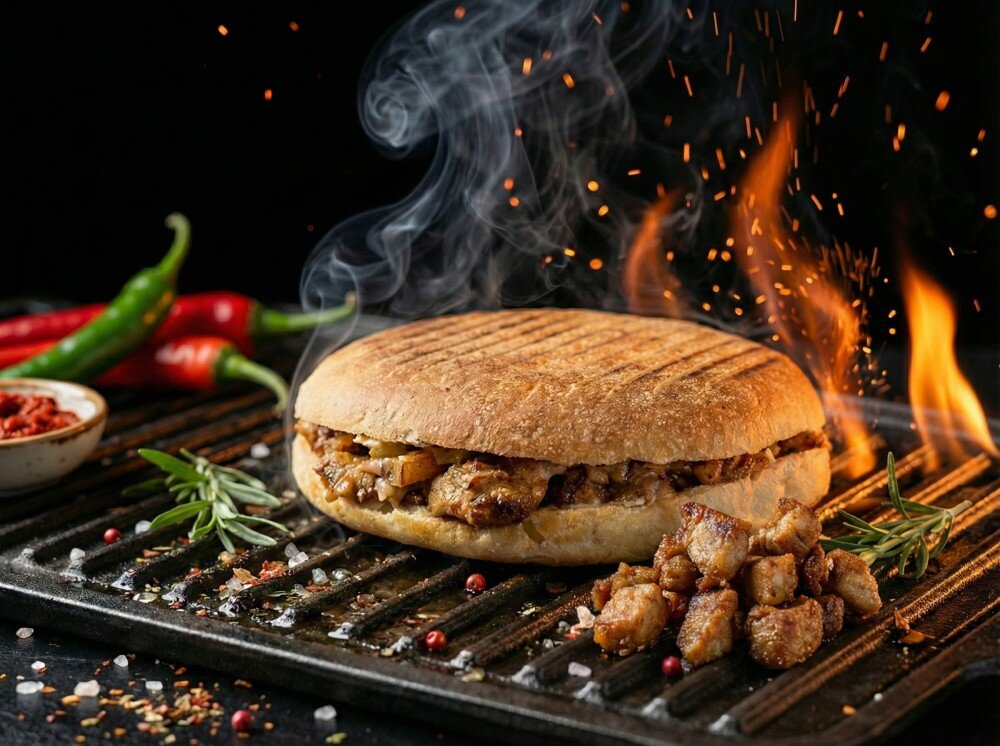 Гиро, свинина, огурец соленый, картофель фри, помидор, соус